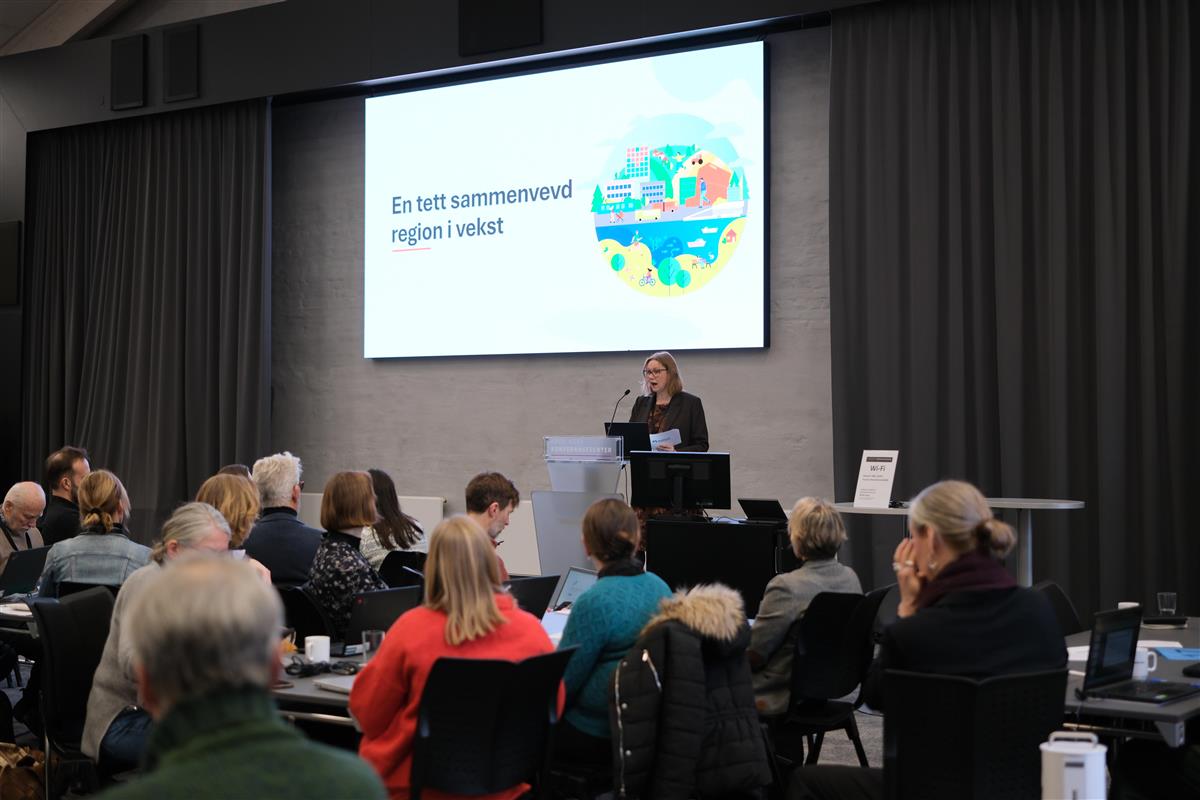 – Vi er her for å gi gode innspill til regionalplanen, men også fordi vi ønsker et tettere samarbeid både med fylkeskommunen og de andre kommunene i regionen. Når vi jobber sammen, blir også utviklingen i Nittedal bedre, sier Nicole Holmeseth Martin fra Nittedal kommune.